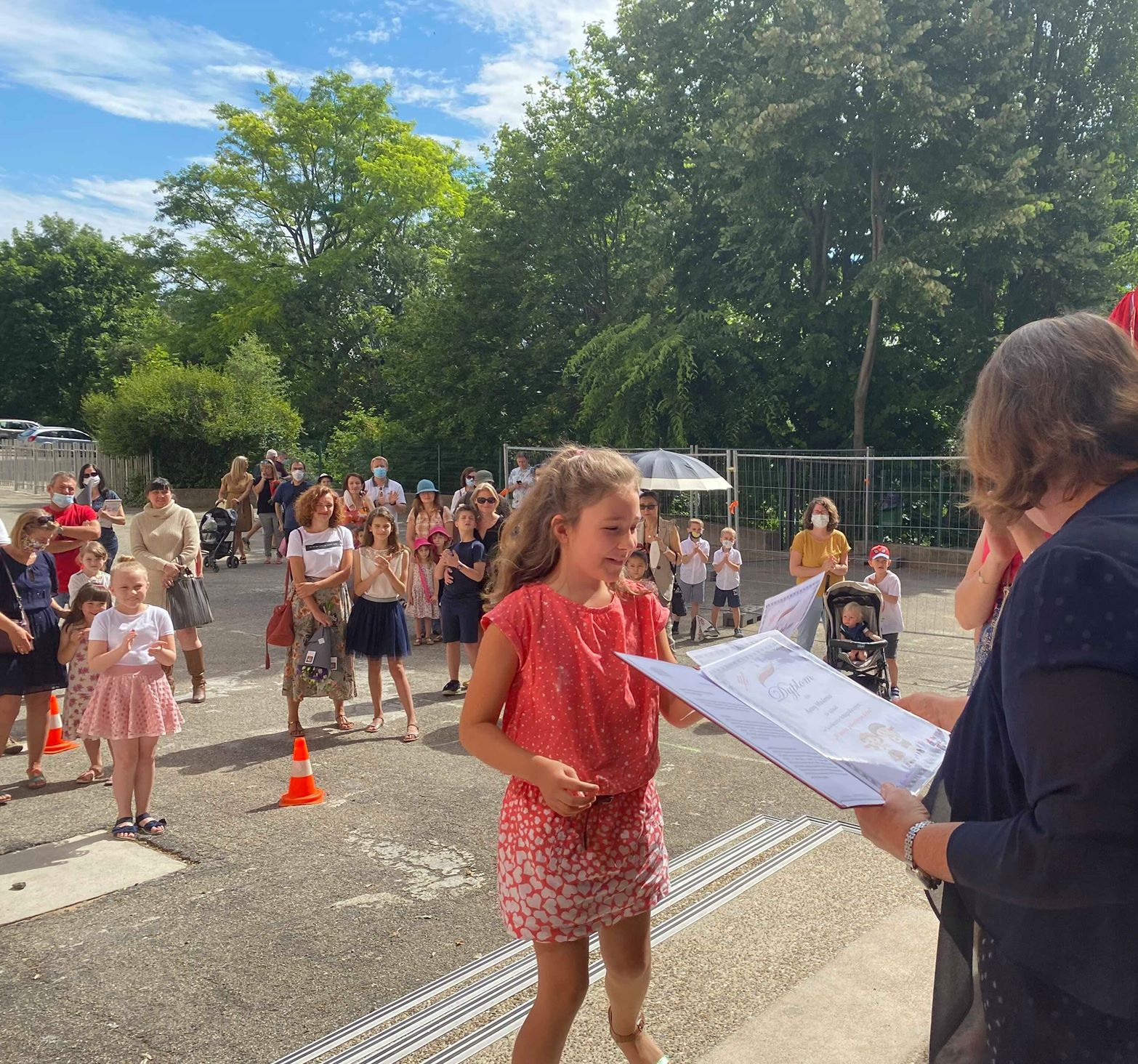 Zapraszamy bardzo serdecznie na krótką fotorelację z zakończenia roku szkolnego w naszej szkole. Odbyło się ono nieco inaczej niż w latach poprzednich na szkolnym podwórku z zachowaniem wszystkich niezbędnych środków ostrożności. Na wstępie Pani Kierownik Elżbieta Blachas podsumowała ten wyjątkowy rok szkolny dziękując wszystkim uczniom, nauczycielom oraz rodzicom za wytrwałość i szczególne zaangażowanie w czasie nauczania zdalnego. Rada Rodziców przekazała również całemu gronu pedagogicznemu serdeczne gratulacje i podziękowania za cały rok wytrwałej pracy. Następnie każdy laureat i uczestnik konkursu „W moim polonijnym domu” otrzymał z rąk Pani Kierownik dyplom oraz nagrodę rzeczową.
